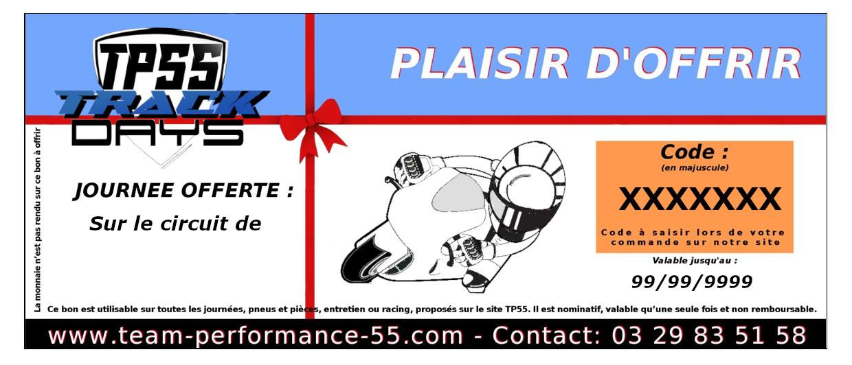 COMMENT UTILISER UN CHEQUE CADEAU ![]() Vous avez reçu un chèque cadeau, voici comment l'utiliser : SELECTIONNER LA DATE SOUHAITEE Il sufit de vous rendre sur notre calendrier (onglet INSCRIPTION), de choisir votre date et de cliquer sur s'inscrire. ![]() Ensuite il faut ajouter la date souhaitée au panier ![]() Pensez à ajouter les assurances si besoin. ![]() UTILISER LE CODE DU CHEQUE CADEAU Un fois la date choisie, rendez vous dans votre panier et vous pouvez enfin saisir le code inscrit sur le chèque cadeau dans la case "Code Promotionnel" Attention le code doit être saisi en majuscules et vous devez être connecté à votre compte pour que le code soit reconnu ![]() ![]() RESTE A PAYER Si votre chèque cadeau est inférieur au montant de la journée choisie, vous pourrez payer la différence de plusieures manières : - CB directement sur le site, - Chèque - Virement - Sur place, si le montant n'excede pas 20 €uros. |