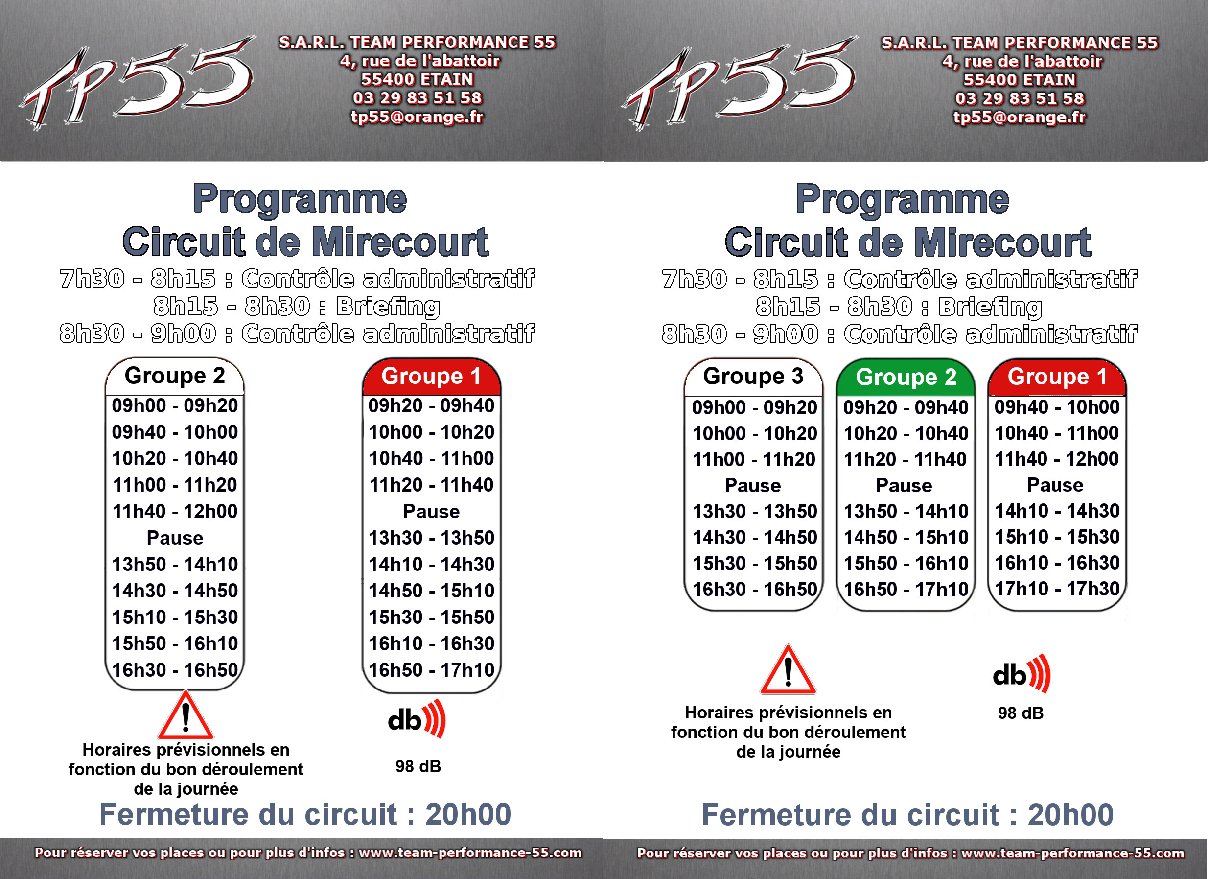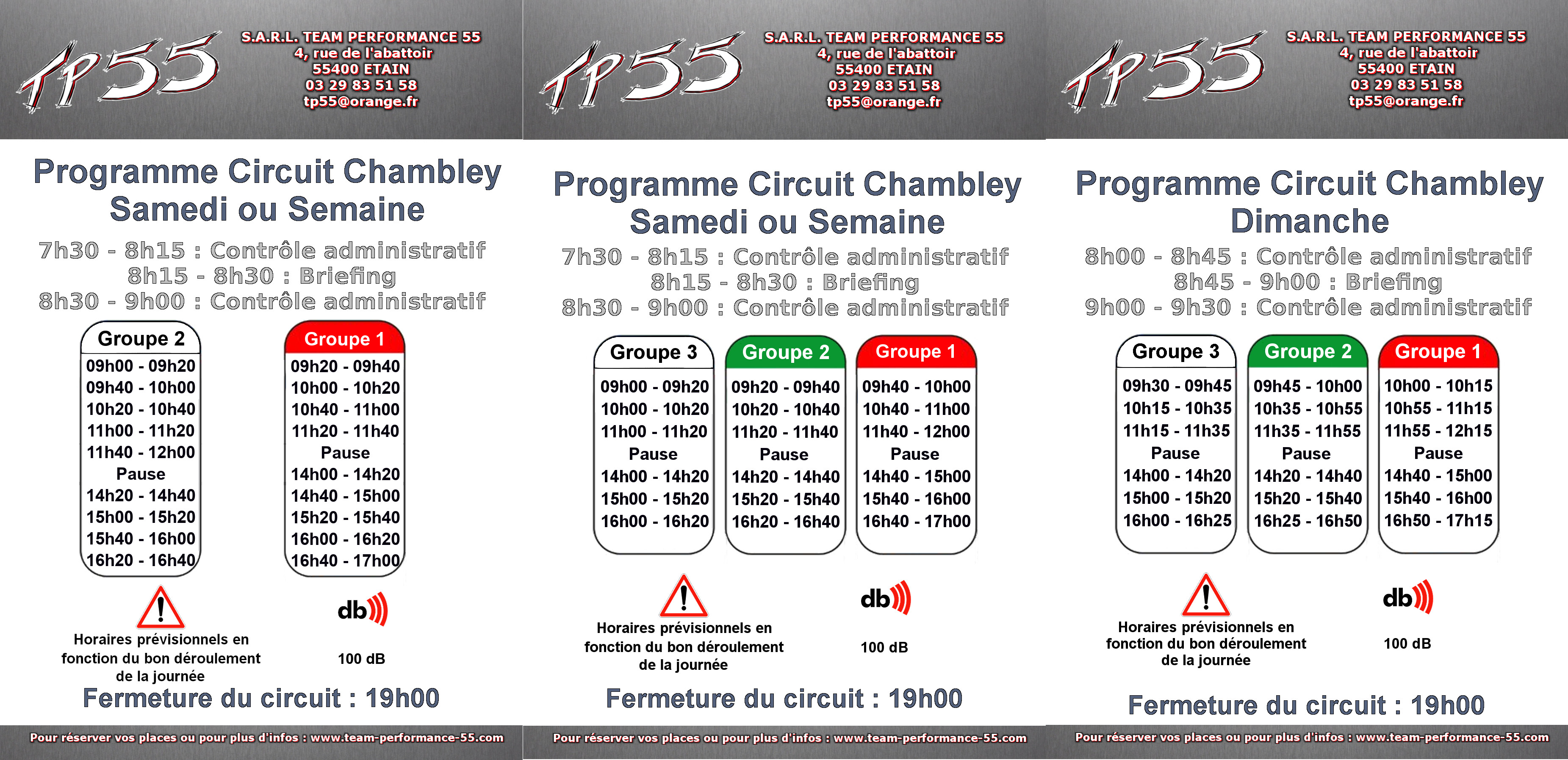 Vous pourrez retrouver ici les plannings de toutes nos journées : Dijon, Chambley, Anneau du Rhin et Mirecourt.